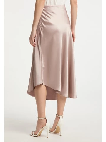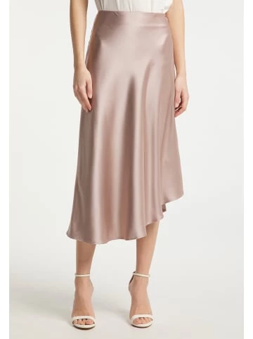 Dieser asymmetrisch geschnittene A-Linienrock von DreiMaster Klassik zaubert einen glamourösen Touch in Ihre Daily Looks. Der High-Rise-Bund betont feminin die Taille und lässt den fließenden, seidig glänzenden Stoff schwungvoll Ihre Beine umspielen. Ob am Abend oder am Tag – ob mit hohen oder flachen Schuhen, dieser elegante Rock lässt sich vielseitig kombinieren. – Seidig schimmernder A-Linienrock – Femininer High-Rise-Bund – Seitlicher Reißverschluss – Asymmetrischer SaumGrößenhinweisL