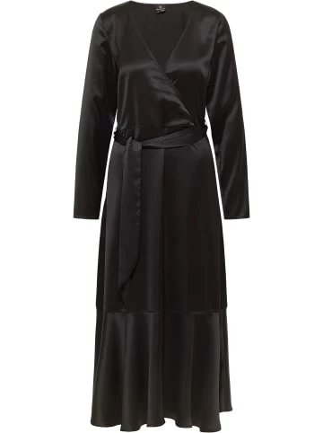 Elegant und zeitlos entfaltet dieses Blusenkleid von DreiMaster Klassik seine Wirkung. Der obere Teil, in Optik einer Wickelbluse, gewährt verschiedene Tragevarianten. Sie können ihn als kleinen V-Ausschnitt tragen oder das dezent angebrachte Häkchen öffnen und etwa ein Top mit Spitzenbesatz blitzen lassen, wie auch Ihren Schmuck betonen. Der lang und einfach fallende Rockteil endet in einem leicht schwingenden Saum, der noch eine schöne, weibliche Note in das Gesamtbild bringt. Dazu trägt auch der weiche, breite Bindegürtel in der Taille bei. Sanft schimmerndes und weich fließendes Material schmeichelt und verleiht vollends edle Erscheinung. – Langes Kleid mit edlem Schimmer – Oberteil in Wickeloptik – Breiter, weicher Bindegürtel – Ausschnitt mit Häkchenverschluss – Sanft schwingender SaumGrößenhinweisL