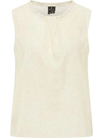 Der elegante und feine Designansatz von DreiMaster Klassik, präsentiert sich perfekt in dieser ärmellosen Bluse. Der fließende Stoff zeigt einen harmonischen Alloverprint mit einem Faltenwurf in der Mitte, der sich charmant in den gekräuselten Ausschnitt einfügt. Ob Business oder Gartenparty, mit diesem Top sind Sie immer auf der sicheren Modeseite. – Ärmelloses Blusentop – Zarter Alloverprint – Gekräuselter Ausschnitt – Falten in der Ausschnitt-Mitte – Fließendes, knitterfreies MaterialGrößenhinweisL