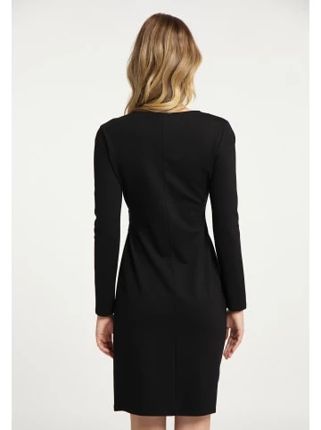 Das drapierte Kleid von DreiMaster Klassik fügt sich nahtlos in unsere Alltagsgarderobe. Dabei besticht die figurbetonte Silhouette durch eine Wickeloptik im oberen Teil, während die Taille mit schmeichelnden Falten umspielt wird. Dank des elastischen Jersey-Materials ist es sehr tragefreundlich und vielseitig. Denn je nach Wahl der Accessoires haben Sie am Tag ein elegantes Jersey-Kleid, am Abend das aufregende „Kleine Schwarze“. – Drapiertes Kleid – Aus elastischem Jersey – Wickeloptik – Falten im Taillenbereich – Elegante KnielängeGrößenhinweisL