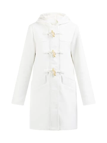 Der weiße Dufflecoat von DreiMaster Klassik wurde aus einer weichen Qualität mit Wollanteil gefertigt und mit einem klassisch-geraden Schnitt versehen. Die charakteristischen Knebelverschlüsse aus Holz prägen den Stil, darunter verbirgt sich ein robuster Reißverschluss. Zwei große Taschen mit Druckknopf, eine Kapuze sowie eine DreiMaster-Logo-Stickerei am Oberarm verleihen dem Übergangsmantel ein zeitloses Aussehen. – Trendiger Dufflecoat – Weiches Material mit Wolleanteil – Typische Holzknebel – Verdeckter Reißverschluss – Kapuze – Zwei Taschen mit Druckknopf – Logo-Stickerei auf dem OberarmGrößenhinweisL