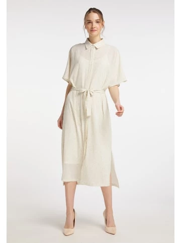 Das Hemdblusenkleid von DreiMaster Klassik verleiht Ihnen im Handumdrehen einen smarten Look. Gerfertigt aus einem luftigen, fließenden und knitterarmen Material, präsentiert es sich mit weiten Ärmeln sowie einem materialgleichen Taillengürtel. Der Kentkragen, die durchgehende Knopfleiste und die seitlichen Gehschlitze sorgen bei dem Modell für einen eleganten Look, der von Office bis Gartenparty entspannt mitspielt. – Leichtes Midikleid – Allover Tupfenprint – Fließendes, knitterfreies Material – Weite Ärmel ohne Schulternaht – Mit Taillengürtel – Hohe Seitenschlitze – Verdeckte Knopfleiste – Mit UnterkleidGrößenhinweisL