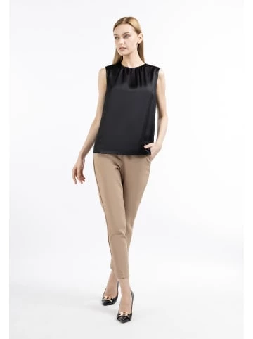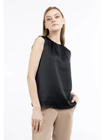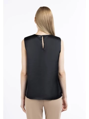 Das glänzende, ärmellose Top von DreiMaster Klassik ergänzt perfekt Ihre Outfits ganz gleich, ob Sie am es am Abend oder am Tag unter einer Strickjacke tragen. Der in Falten gelegte Rundhalsausschnitt wird mit einem kleinen Knopf auf der Rückseite geschlossen und sorgt damit für ein charmantes Flair. – Top in Satinoptik – Falten am Rundhalsausschnitt – Ärmellos – Unkompliziertes Material – Knopfverschluss aud der Rückseite – Mit InnenfutterGrößenhinweisL