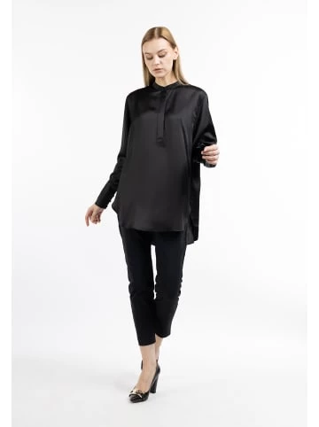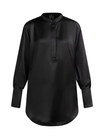 Diese Bluse von Dreimaster Klassik hat eine klassische Silhouette, die Ihre Garderobe stilvoll ergänzt. Dank der glänzenden Satinoptik und einer angenehmen Länge lässt sie sich hervorragend auch über einer Hose tragen. Der Knopfleistenverschluss ist versteckt und sorgt so für eine harmonische Optik. Ein weiterer Aspekt sind die schmalen Ärmelenden mit abschließenden Manschetten, die Ihnen besonders schmeicheln. – Langes Blusenshirt – Aus glänzendem Material – Ärmelenden mit Manschettenknöpfen – Rückseite länger als Vorderseite – Geformter SaumGrößenhinweisL