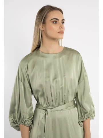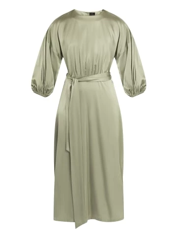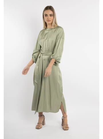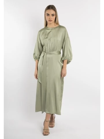 Das elegante und glamourös schimmernde Satin-Modell von DreiMaster Klassik ist ausgestattet mit überschnittenen Schultern und raffinierten Ballonärmeln, einem materialgleichen Gürtel in der Taille und einem rückseitigen Reißverschluss. Mit seinem seidig-glänzenden Look ist es ein Trendpiece, das luxuriösen Star-Appeal versprüht. Ob zur Gartenparty oder zum abendlichen Event, in diesem Kleid ist Ihnen ein gelungener Auftritt gewiss. – Langes Satinkleid – Raffinierte Ballonärmel – Materialgleicher Gürtel – Überschnittene Schultern – Rückseitiger Reißverschluss – Gekräuselte TaillennahtGrößenhinweisL