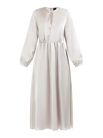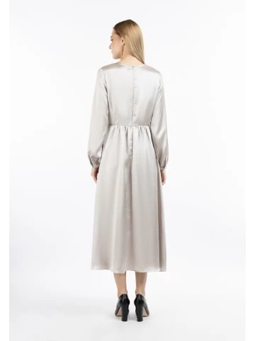 Für glanzvolle Momente ist das Midikleid von Dreimaster Klassik eine ideale Wahl. Ob am Abend zum Dinner oder zu eleganten Events, das fließende Material in Satinoptik setzt feminine Akzente. Ein direkter Eyecatcher ist der Cut-Out am Rundhalsausschnitt sowie die elastische Taille, die Ihre femininen Seiten noch mehr hervorhebt. Auf der Rückseite befindet sich ein ganz dezenter Reißverschluss. – Midikleid in Satinoptik – Rundhalsausschnitt mit Cut-Out – Ärmelenden mit Manschetten – Gummizug in der Taille – Elegante MidilängeGrößenhinweisL