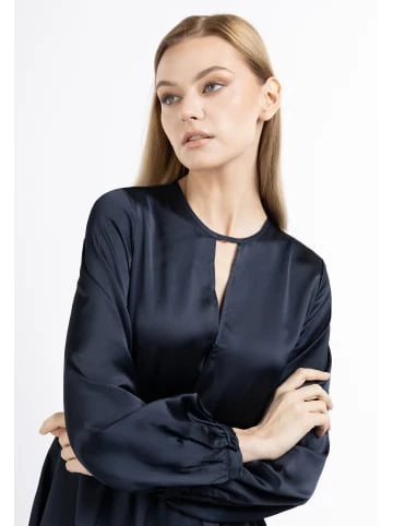 Für glanzvolle Momente ist das Midikleid von Dreimaster Klassik eine ideale Wahl. Ob am Abend zum Dinner oder zu eleganten Events, das fließende Material in Satinoptik setzt feminine Akzente. Ein direkter Eyecatcher ist der Cut-Out am Rundhalsausschnitt sowie die elastische Taille, die Ihre femininen Seiten noch mehr hervorhebt. Auf der Rückseite befindet sich ein ganz dezenter Reißverschluss. – Midikleid in Satinoptik – Rundhalsausschnitt mit Cut-Out – Ärmelenden mit Manschetten – Gummizug in der Taille – Elegante MidilängeGrößenhinweisL