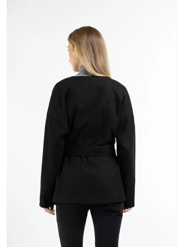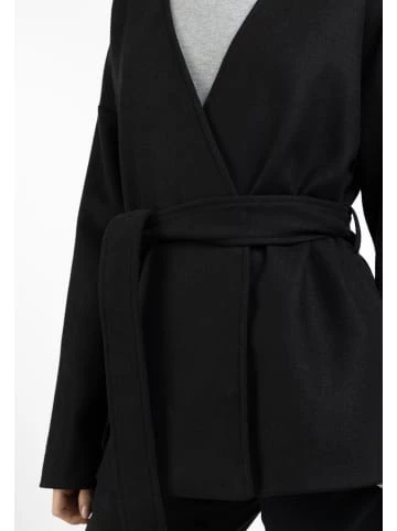 Mit der Jacke von DreiMaster Klassik begegnen wir klaren Linien und minimalistischem Design. Das kragenlose Modell wurde aus einem weichen Materialmix mit Wolleanteil gefertigt und zeigt sich mit einer offenen Vorderseite sowie einem akzentuierenden Taillengürtel, der die offene Fasson zusammenhält. Zwei seitliche Eingrifftaschen lockern das Design auf, das mit zwei Druckknöpfen geschlossen wird. – Übergangsjacke in Wickeloptik – Aus weichem Material mit Wolleanteil – Materialgleicher Gürtel – Zwei Druckknöpfe zum Verschließen – Seitliche Eingriffstaschen – KragenlosGrößenhinweisL