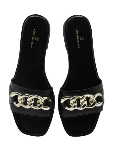 Gefertigt aus hochwertigem Leder, ist diese Sandale mit einem breiten Riemen und einem goldfarbenen Kettendetail versehen. In dieser Kombination werden die Sandalen von DreiMaster Klassik zum edlen Begleiter für jeden Anlass. Die trendige Square-Toe-Form mit offener Zehenpartie, die klassischen Farben und die sehr bequeme Laufsohle verleihen dem Modell einen tollen, modernen Look. – Feminine Sandale – Aus weichem Leder – Innensohle aus Leder – Dekoratives Kettendetail – Offene ZehenpartieGrößenhinweis36