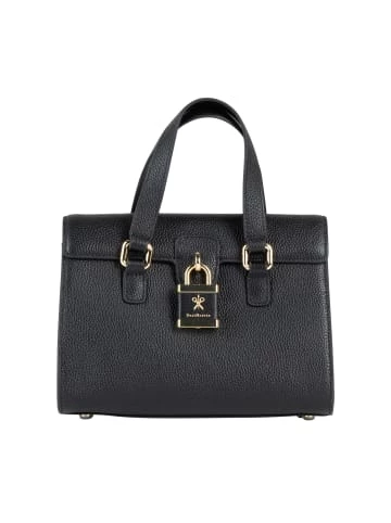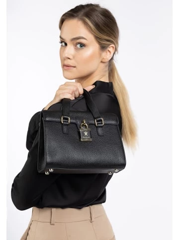 In Ihrer stilvollen Eleganz begeistert die kleine Henkelasche von DreiMaster Klassik. Das edle Accessoire aus weichem, genarbten Leder wird von einem Schloss mit Logo-Verzierung und den goldfarbenen Details dominiert. Das Innenfach aus Baumwolle, mit seitlichem Reißverschlussfach, bietet Platz, während ein Magnetverschluss Ihre Utensilien sichert. Dank des abnehmbaren Schulterriemens kann das edel Piece auch an der Hand getragen werden. Maße: 23,5cm x 17,5cm x 10cm (BxHxT) – Elegante Henkeltasche – Aus weichem, genarbten Leder – Schloss mit Logo-Branding – Goldfarbene Akzente – Geräumiges Innenfach aus Baumwolle – Verstellbarer und abnehmbarer Tragegurt – Metallfüßchen auf der Unterseite – Maße: 23,5cm x 17,5cm x 10cm (BxHxT)GrößenhinweisONESIZE