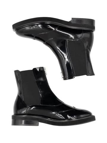 Die edlen Boots von DreiMaster Klassik sind eine stilvolle Ergänzung Ihrer Herbst-Winter-Outfits. Das geschmeidige Lackleder erhält durch die geschwungenen Nähte eine klassische Budapester-Optik, die besonders mit dem silberfarbenen Reißverschluss auf dem Spann harmoniert. Die elastischen Seiteneinsätze für eine gelungene Chelsea-Optik und erzeugen ein angenehmes Tragegefühl. – Elegante Lackleder Boots – Geschwungene Nähte – Elastische Seiteneinsätze – Breite Sohle mit Blockabsatz – Innensohle aus LederGrößenhinweis36
