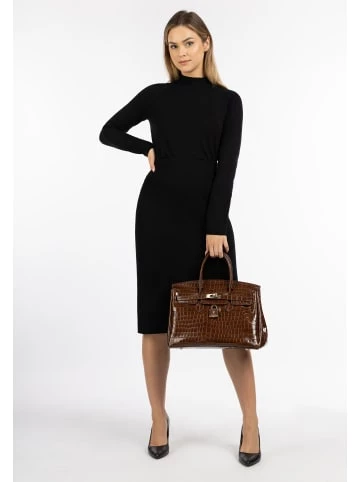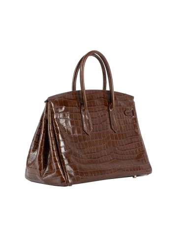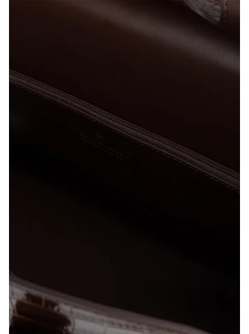 Runden Sie Ihre Garderobe mit der edlen Henkeltasche von DreiMaster Klassik ab. Die aus Leder gefertigte Tasche, begeistert mit ihrer eleganten Krokodillederoptik und den zwei kurzen Henkeln. Goldglänzende Metalldetails sowie ein Schloss mit Brandverzierung verleihen dem strukturierten Design ein gelungenes Finish. Der geräumige Innenraum hat ein Baumwollfutter mit einer Reißverschlusstasche und zwei Stecktaschen. Maße: 35cmx 27cm x 18cm (BxHxT) – Elegante Henkeltasche – Leder mit Krokodilprägung – Goldfarbene Hardware – Dekoratives Schloss mit Logo-Verzierung – Innenfutter aus Baumwolle – Unterseite mit Metallfüßchen – Maße: 35cmx 27cm x 18cm (BxHxT)GrößenhinweisONESIZE