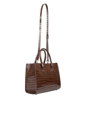 Mit der eleganten Tote von DreiMaster Klassik können Sie Ihre wichtigsten Utensilien stilvoll transportieren. Sie ist aus edlem Leder in Kroko-Optik gefertigt und verfügt über eine verdeckte Lasche mit Magentverschluss, die Ihre Essentials sichert. Goldfarbene Details sowie ein metallenes Logo auf der Vorderseite setzen weitere Akzente, während der geräumige Innenraum mit seinem Baumwollfutter und einer Reißverschlusstasche für viel Stauraum sorgt. Maße: 33cm x 25cm x 15cm (BxHxT) – Elegante Tote Bag – Aus Leder in Krokodiloptik – Goldfarbene Akzente – Lasche mit Magnetverschluss – Innenfutter aus Baumwolle – Verstellbarer und abnehmbarer Tragegurt – Unterseite mit Metallfüßchen – Maße: 33cm x 25cm x 15cm (BxHxT)GrößenhinweisONESIZE