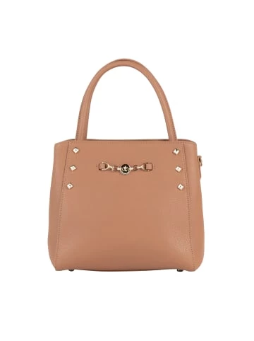 In ihrer eleganten Form überzeugt die Henkeltasche von DreiMaster Klassik. Das edle Accessoire ist durch das weiche, genarbte Leder geprägt und mit farblich abgestimmten Nähten versehen. Die mittig angesetzte goldfarbene Hardware mit logoverziertem Metallplättchen sowie die Pyramidennieten setzen dabei wertige Akzente. Darüber hinaus besitzt diese Henkeltasche innen eine Reißverschlusstasche, die Ihre wichtigsten Essentials verwahrt. Tragen Sie das Accessoire am Henkel oder mit dem abnehmbaren Schulterriemen. Maße: 22,5cm x 22cm x 14cm (BxHxT) – Edle Henkeltasche – Aus weichem Leder – Geräumiges Innenfach – Goldfarbene Akzente – Metall-Logo-Plättchen auf der Vorderseite – Verstellbarer und abnehmbarer Tragegurt – Metallfüßchen auf der Unterseite – Maße: 22,5cm x 22cm x 14cm (BxHxT)GrößenhinweisONESIZE