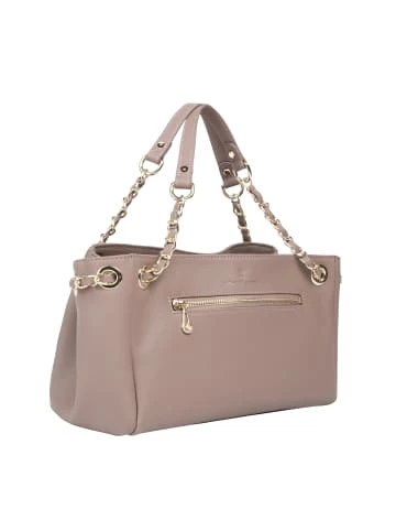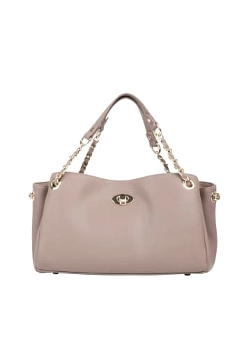 In einer eleganten und stilvollen Form zeigt sich diese Ledertasche von DreiMaster Klassik. Das elegante Accessoire ist durch das weiche, genarbte Leder geprägt und mit goldfarbener Hardware versehen. Darüber hinaus besitzt die Tasche einen Gliederkettenhenkel mit verstärkter Schulterpartie sowie eine Innenfach aus Baumwolle, wo Ihre wichtigsten Essentials verwahrt werden können. Maße: 26cm x 16cm x 13cm (BxHxT) – Feminine Schultertasche – Aus weichem, genarbten Leder – Mit goldfarbener Hardware – Kettenschulterriemen mit verstärkter Schulterpartie aus Leder – Unterseite mit Metallfüßchen – Maße: 26cm x 16cm x 13cm (BxHxT)GrößenhinweisONESIZE