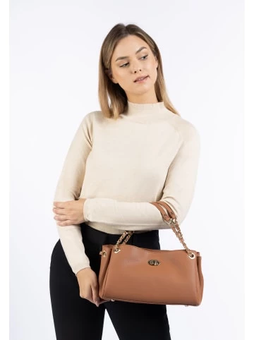 In einer eleganten und stilvollen Form zeigt sich diese Ledertasche von DreiMaster Klassik. Das elegante Accessoire ist durch das weiche, genarbte Leder geprägt und mit goldfarbener Hardware versehen. Darüber hinaus besitzt die Tasche einen Gliederkettenhenkel mit verstärkter Schulterpartie sowie eine Innenfach aus Baumwolle, wo Ihre wichtigsten Essentials verwahrt werden können. Maße: 26cm x 16cm x 13cm (BxHxT) – Feminine Schultertasche – Aus weichem, genarbten Leder – Mit goldfarbener Hardware – Kettenschulterriemen mit verstärkter Schulterpartie aus Leder – Unterseite mit Metallfüßchen – Maße: 26cm x 16cm x 13cm (BxHxT)GrößenhinweisONESIZE