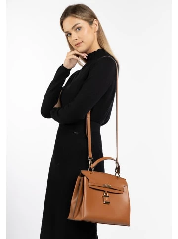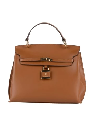 Ein stilvoller Klassiker wird hier von DreiMaster Klassik neu interpretiert. Das elegante Accessoire ist aus einem edlen Glattleder gefertigt, mit farblich abgestimmten Nähten versehen und mit einem markanten Schloss plus Logo-Branding verziert. Darüber hinaus ist die edle Henkeltasche mit goldfarbener Hardware ausgestattet. In der Innenseite befindet sich ein Baumwollfutter mit einer kleinen seitlichen Reißverschlusstasche, sodass Ihre wichtigsten Essentials sicher verwahrt werden können. Dank des langen Trageriemens können Sie zwischen einer Schultertasche und einer Crossbody-Bag variieren. Maße: 29cm x 22cm x 11,5cm (BxHxT) – Elegante Henkeltasche – Aus weichem Glattleder – Dekoratives Schloss mit Logo-Branding – Goldfarbene Details – Geräumiges Innenfach aus Baumwolle – Verstellbarer und abnehmbarer Tragegurt – Maße: 29cm x 22cm x 11,5cm (BxHxT)GrößenhinweisONESIZE