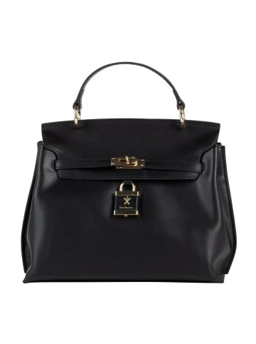 Ein stilvoller Klassiker wird hier von DreiMaster Klassik neu interpretiert. Das elegante Accessoire ist aus einem edlen Glattleder gefertigt, mit farblich abgestimmten Nähten versehen und mit einem markanten Schloss plus Logo-Branding verziert. Darüber hinaus ist die edle Henkeltasche mit goldfarbener Hardware ausgestattet. In der Innenseite befindet sich ein Baumwollfutter mit einer kleinen seitlichen Reißverschlusstasche, sodass Ihre wichtigsten Essentials sicher verwahrt werden können. Dank des langen Trageriemens können Sie zwischen einer Schultertasche und einer Crossbody-Bag variieren. Maße: 29cm x 22cm x 11,5cm (BxHxT) – Elegante Henkeltasche – Aus weichem Glattleder – Dekoratives Schloss mit Logo-Branding – Goldfarbene Details – Geräumiges Innenfach aus Baumwolle – Verstellbarer und abnehmbarer Tragegurt – Maße: 29cm x 22cm x 11,5cm (BxHxT)GrößenhinweisONESIZE