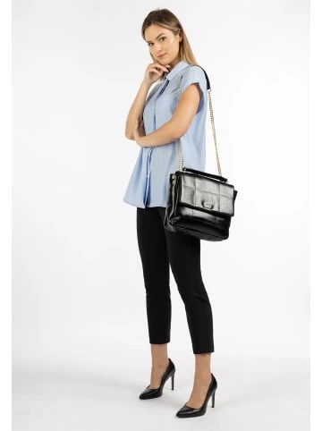Die stilvolle Form überzeugt bei dieser Tasche von DreiMaster Klassik. Das elegante Accessoire ist durch das weiche Leder geprägt, mit farblich abgestimmten Nähten gesteppt und mit einem Designer-Logo verziert. Darüber hinaus besitzt diese Handtasche mehrere goldfarbene Metalldetails und eine kleine Reißverschlusstasche, damit Ihre wichtigsten Essentials sicher verwahrt werden können. Durch den langen Trageriemen können Sie zwischen einer Schultertasche und einer Crossbody-Bag variieren. Maße: 28cm x 24cm x 7,5cm (BxHxT) – Elegante Handtasche – Aus weichem, gestepptem Glattleder – Goldfarbene Akzente – Edles Brand-Logo – Geräumiges Innenfach aus Baumwolle – Kettenschulterriemen mit verstärkter Schulterpartie aus Leder – Maße: 28cm x 24cm x 7,5cm (BxHxT)GrößenhinweisONESIZE